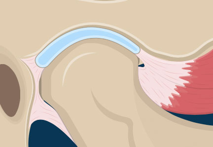 The rounded ends of the lower jaw glide along the temporomandibular joint sockets of the temporal bone. A soft disc absorbs shock to the joint from chewing and other movement.